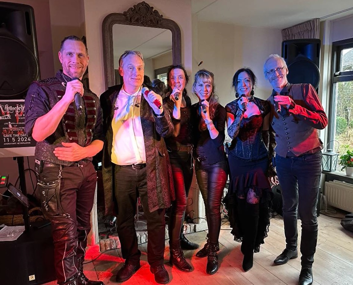 | We zingen graag nummers die niet iedereen doet, symfo/rock/pop, met microfoons & in-ears, en met effecten op geluid. |
